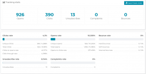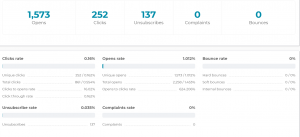 Tracking each open, clicked, or unsubscribed email. From the first email sent to the last one tracking and reporting your progress.